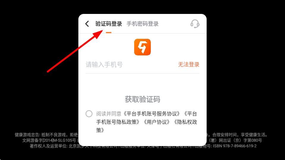 2、進(jìn)入登錄界面后,點(diǎn)擊驗(yàn)證碼登錄,輸入手機(jī)號(hào)后獲得驗(yàn)證碼即可登入。