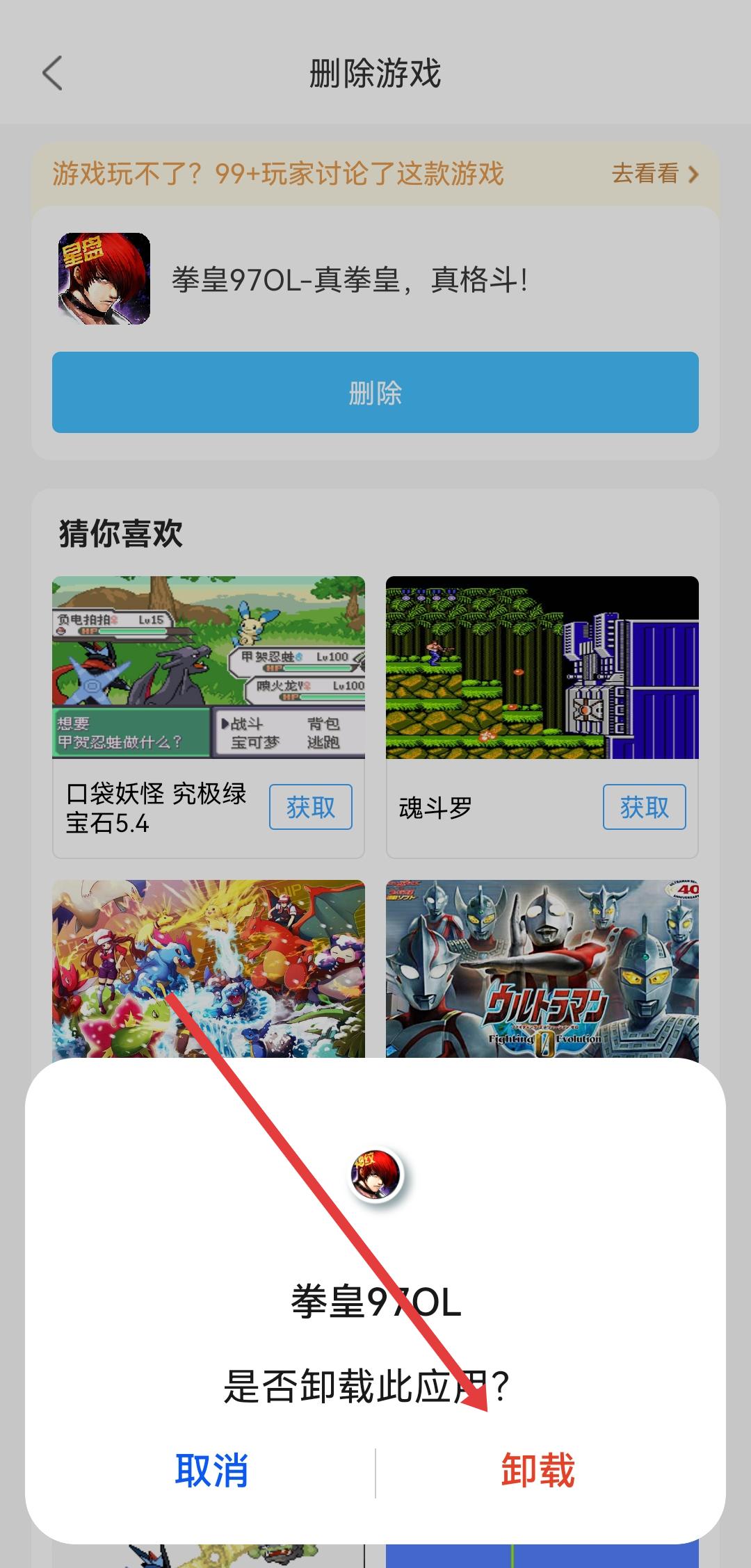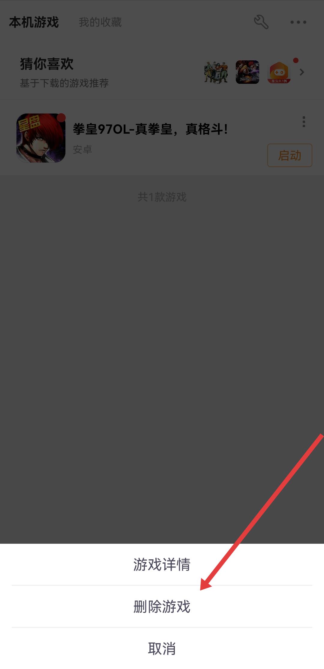 2、在彈出的選項(xiàng)菜單中,選擇點(diǎn)擊刪除游戲,進(jìn)入游戲安裝包的刪除流程。