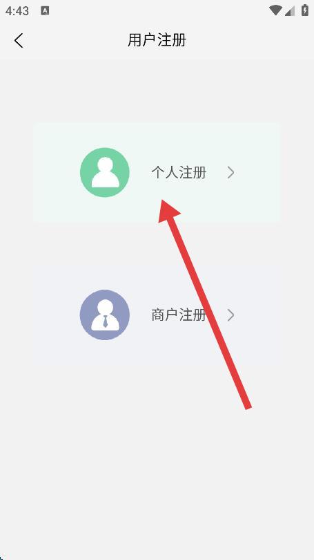 3、進(jìn)入用戶注冊(cè)頁面后,點(diǎn)擊個(gè)人注冊(cè)選項(xiàng)。