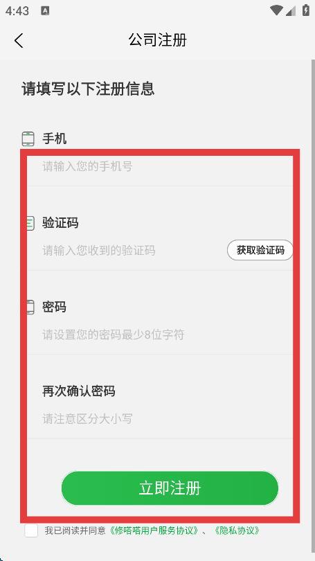 4、根據(jù)要求填寫信息,點(diǎn)擊立即注冊(cè),即可完成登錄。