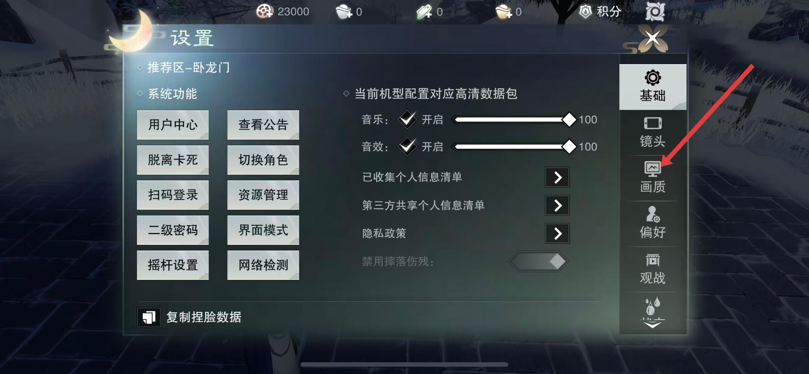 2、進(jìn)入設(shè)置界面后,點(diǎn)擊右側(cè)列表中的畫(huà)質(zhì)選項(xiàng)。
