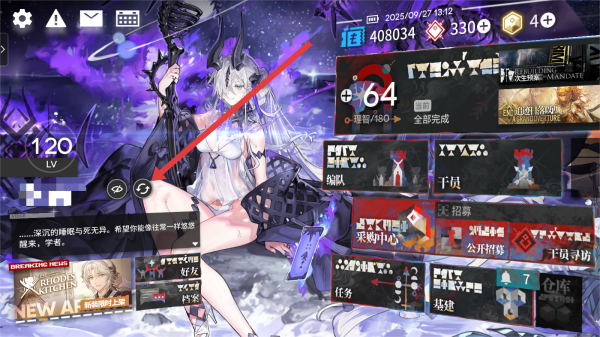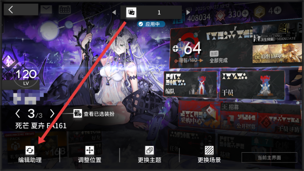 1、在明日方舟主頁中,可以點擊箭頭指向按鈕,進行編輯主頁。