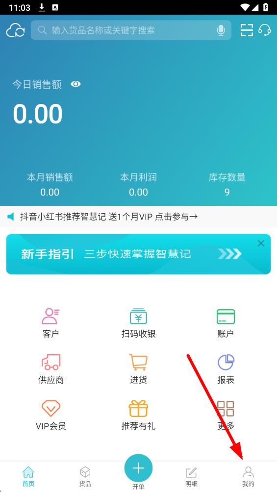 1、打開智慧記APP,點(diǎn)擊底部導(dǎo)航欄中的我的選項(xiàng)。