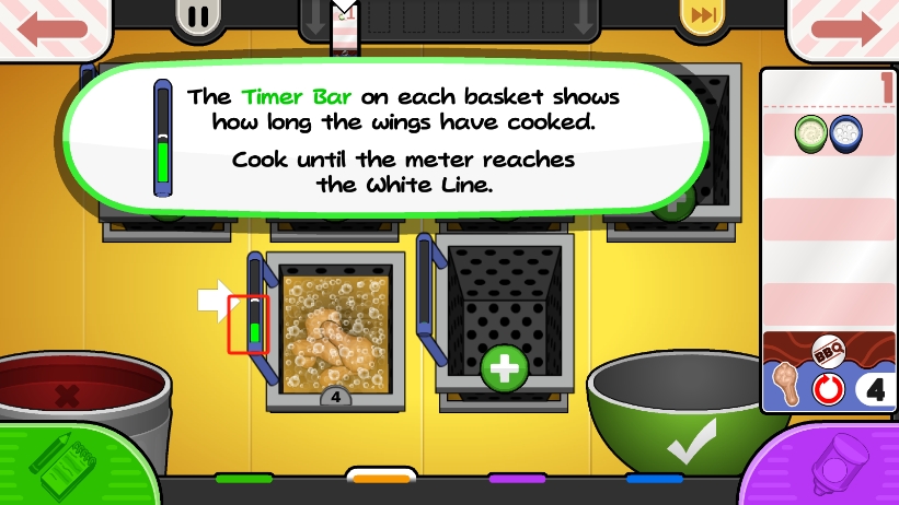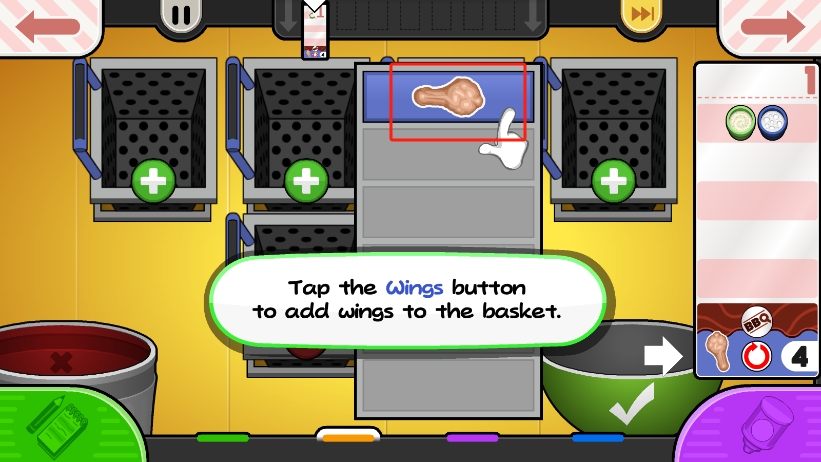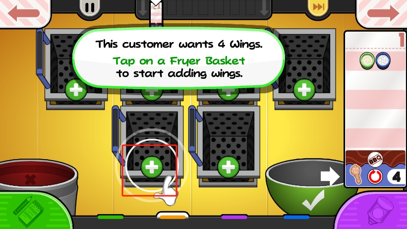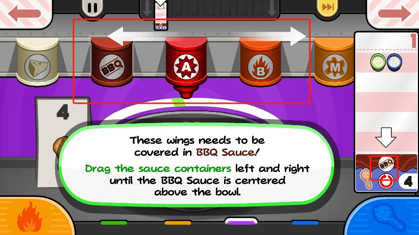 4、接著我們可以看到顧客需要的使BBQ醬料,我們拖動(dòng)醬料左右滑動(dòng)放入正確的醬料即可;