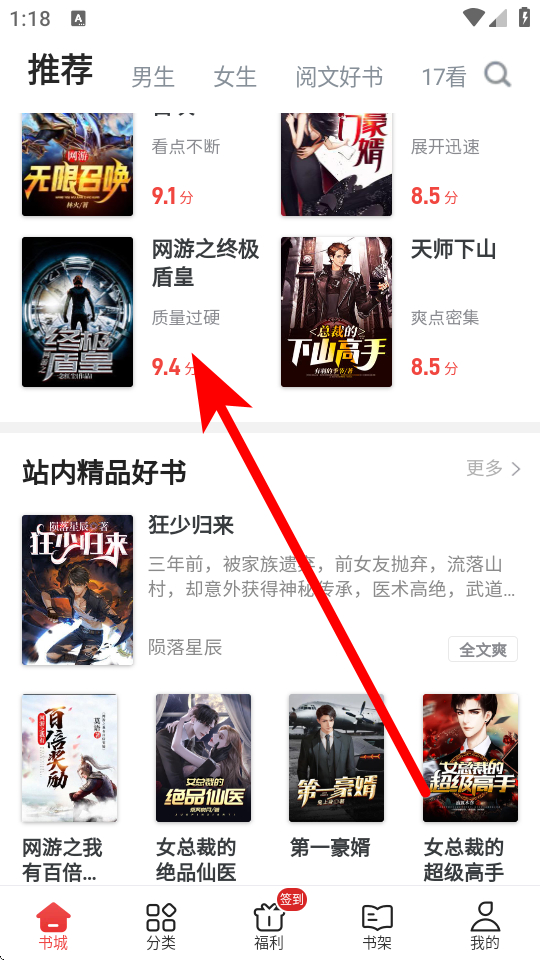 1、打開追書神器APP,在首頁找到想要下載的小說并點擊進入。
