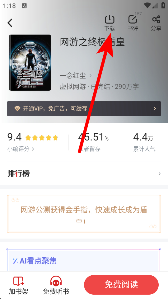 2、在小說書籍詳情頁面,點擊下載圖標。