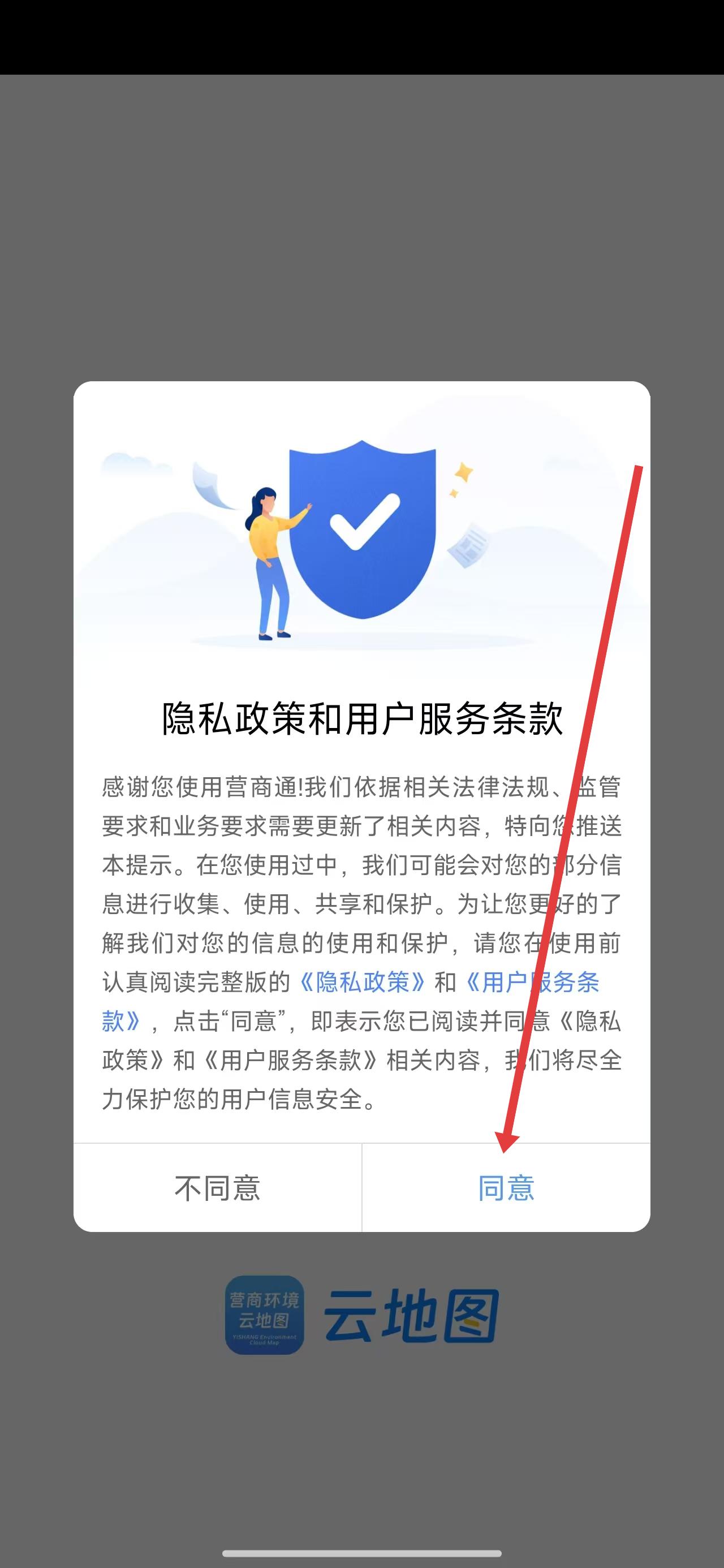 1、在打開app后,通過點擊彈窗中的同意按鈕進入使用app。