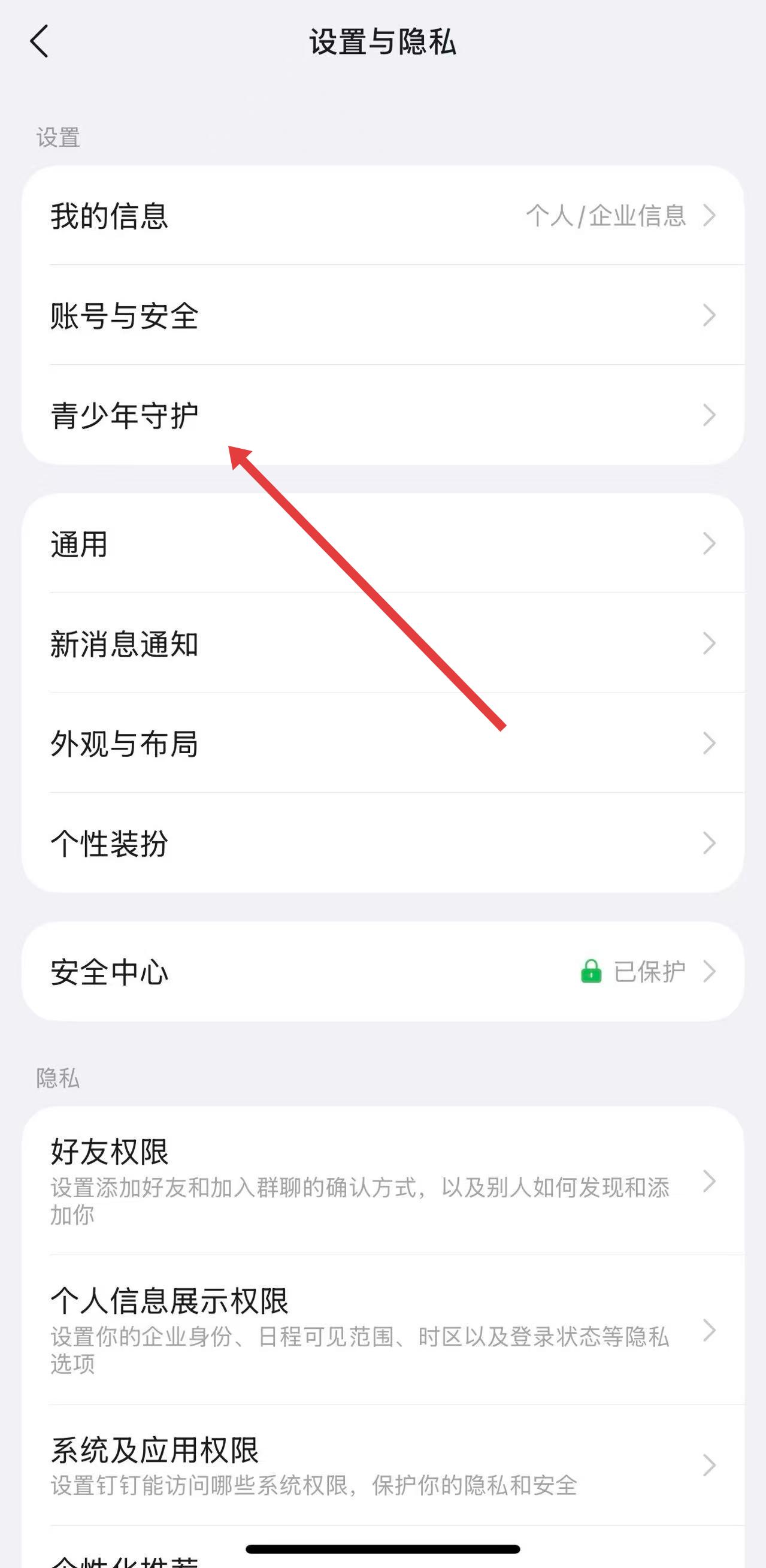 2、在設(shè)置與隱私頁面,找到并點擊青少年守護(hù)選項。
