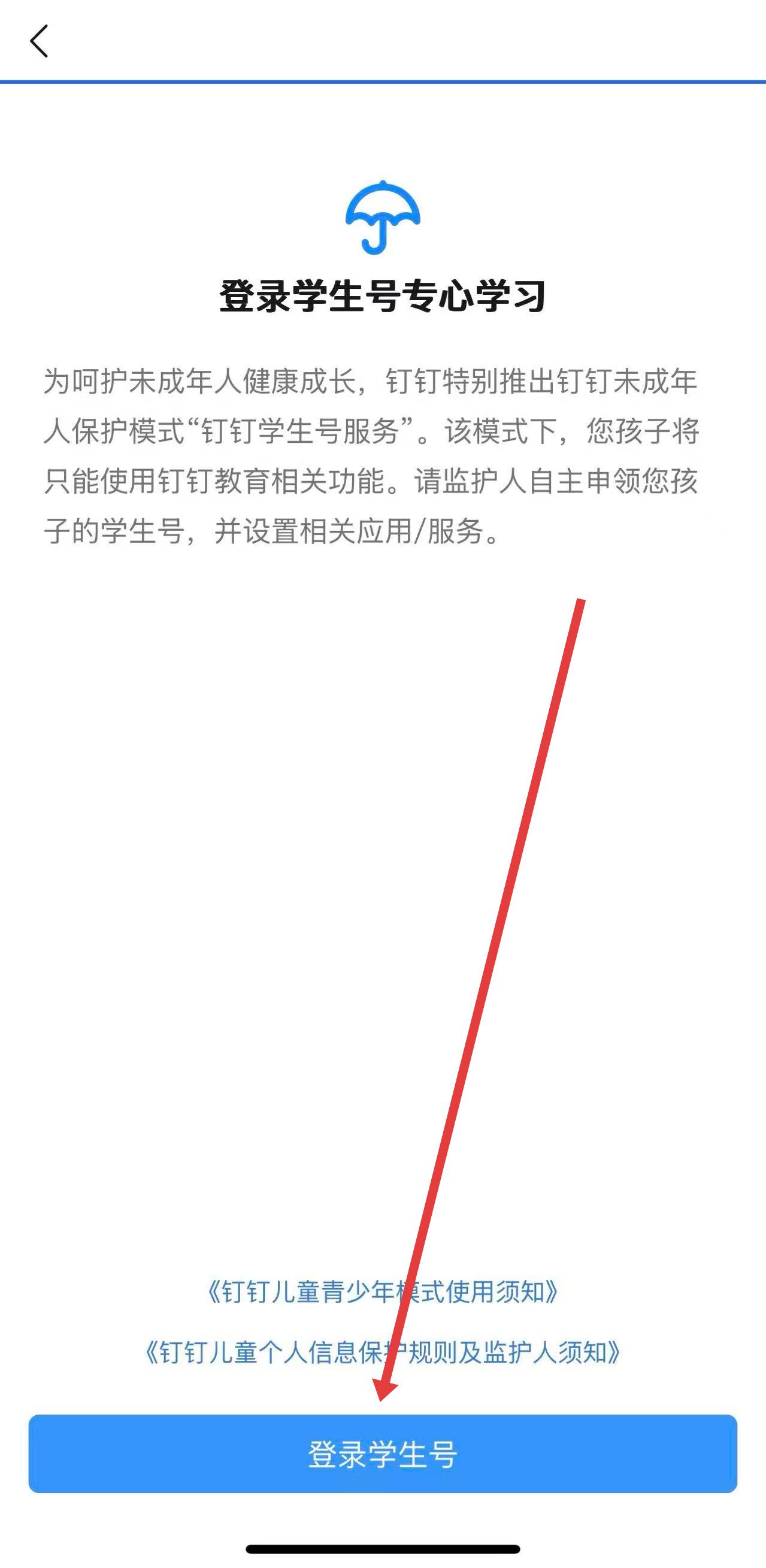 4、在釘釘學(xué)生號頁面,閱讀相關(guān)說明后,點擊登錄學(xué)生號按鈕,按照提示完成學(xué)生號設(shè)置。