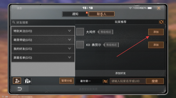 3、瀏覽玩家推薦中的玩家信息,找到想添加為好友的對(duì)象,點(diǎn)擊其對(duì)應(yīng)的添加按鈕,發(fā)出好友申請(qǐng),等待對(duì)方同意就能成功加好友啦。