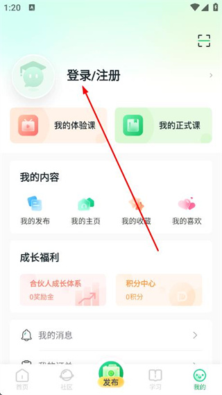 2、在我的頁面中,找到并點擊上方的登錄/注冊區(qū)域。