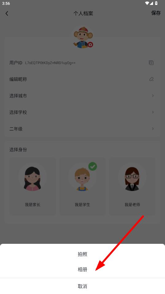 4、在彈出的選項(xiàng)中,點(diǎn)擊相冊(cè),從相冊(cè)里選擇你想要設(shè)置為頭像的圖片,確認(rèn)選擇后即可更換頭像。