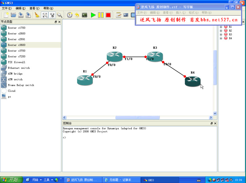 就是我們的 dynampis 模擬器了。有一點(diǎn)請注意,GNS3只支持英文目錄,所以有中文出現(xiàn)