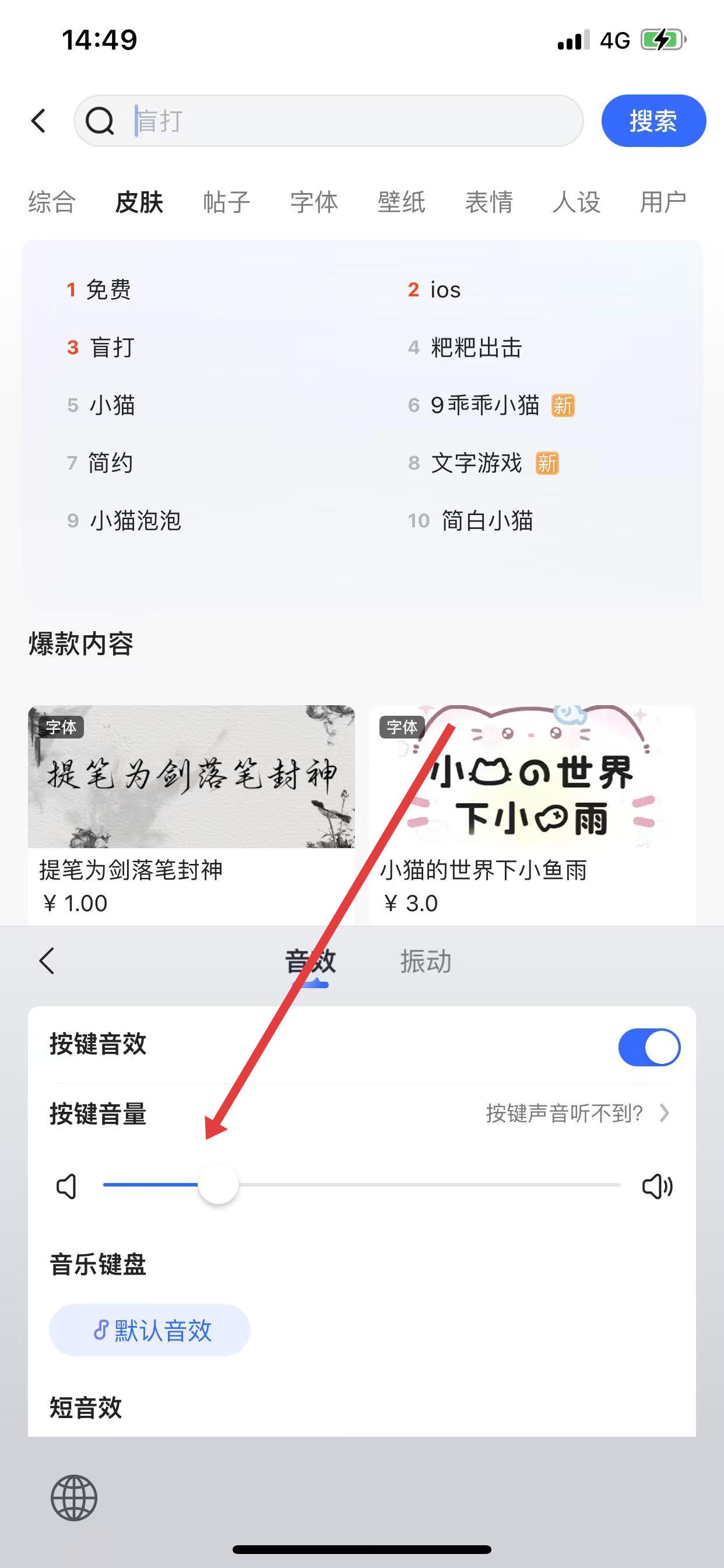 3、在按鍵音效欄,關(guān)閉按鍵音效開關(guān),即可關(guān)閉打字聲音。