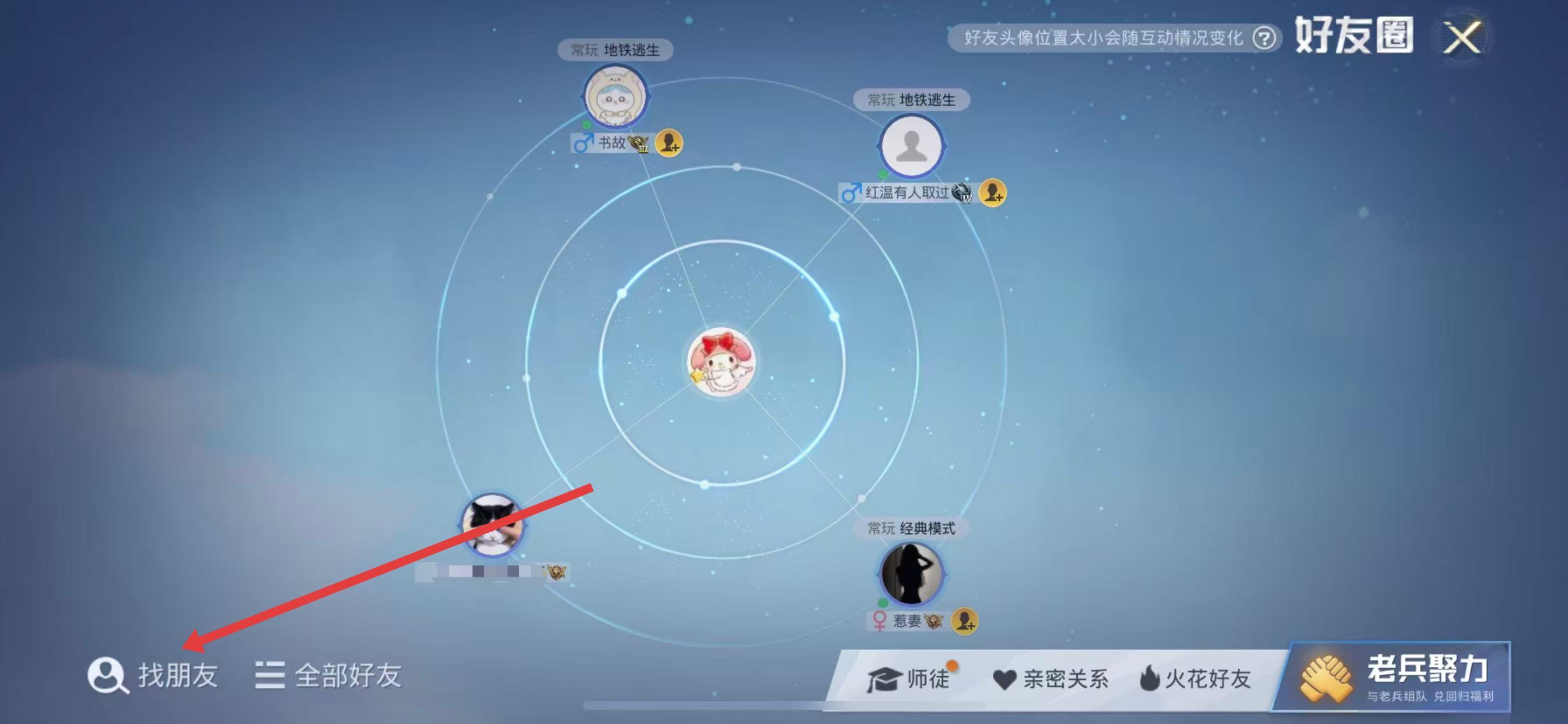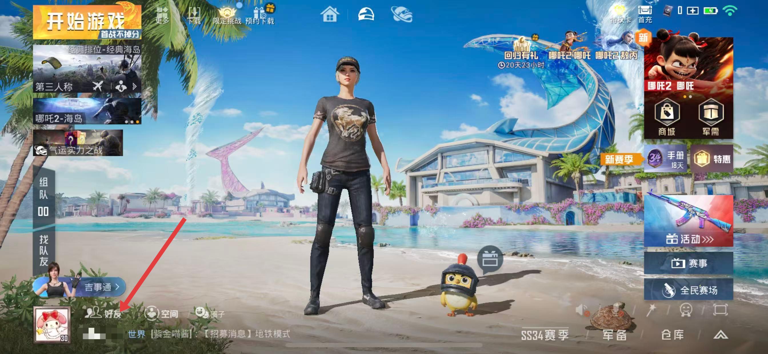 1、在和平精英游戲主界面,點擊左下方的好友按鈕,進入好友相關界面。