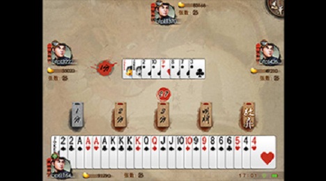 發(fā)牌:當四方全部就位后,開始發(fā)牌,最后8張為底牌,進入叫分階段。