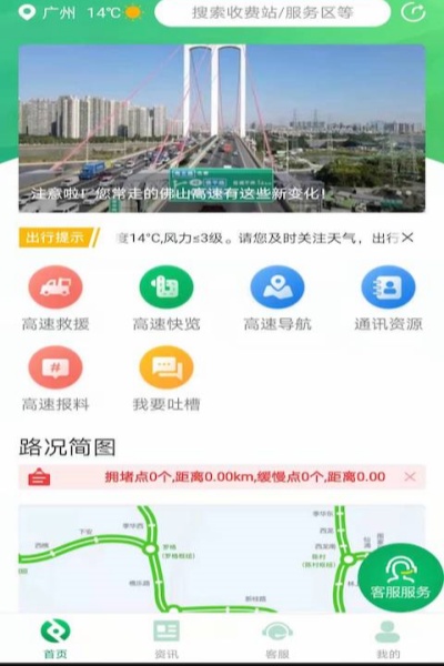 該軟件實時發(fā)布了有關(guān)佛山高速的路況信息,并且還為用戶提供了高速救援、路況報料、高速導(dǎo)航、通訊資源等功能,用戶可以通過軟件更加準確、便捷的了解到有關(guān)佛山高速的各種信息,從而讓用戶的出行更加的便利。