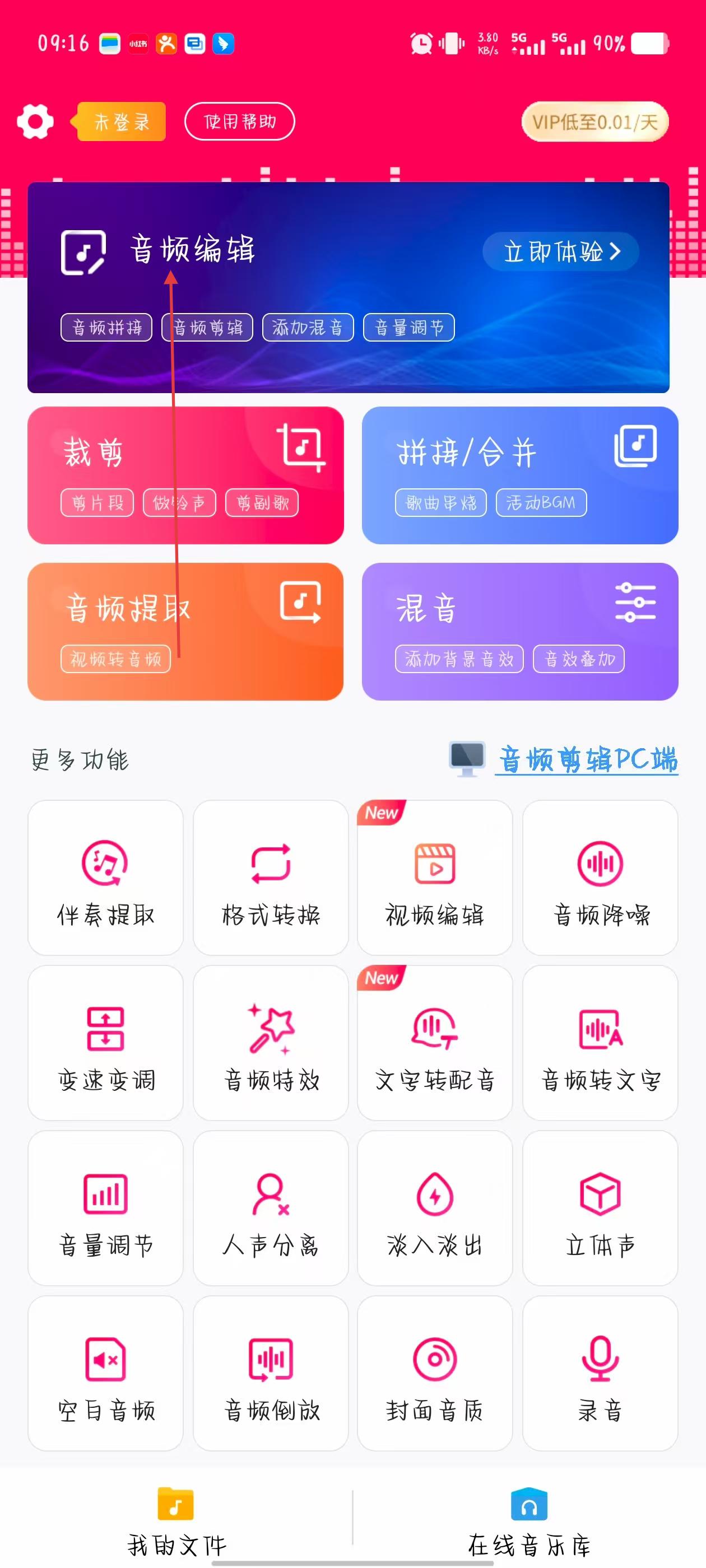 1、打開音頻編輯工具,點擊界面中的音頻編輯板塊,進入音頻編輯流程。