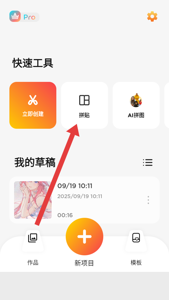 1、打開微剪輯APP,需要點擊拼貼,進入照片選擇的界面。
