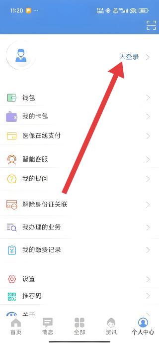3、進(jìn)入個(gè)人中心頁(yè)面后,點(diǎn)擊頂部去登錄選項(xiàng),跳轉(zhuǎn)至登錄界面,開(kāi)始賬號(hào)登錄流程,以便使用醫(yī)保支付等功能。