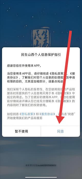 1、打開(kāi)民生山西APP,彈出個(gè)人信息保護(hù)指引彈窗,點(diǎn)擊同意按鈕,接受隱私政策與服務(wù)協(xié)議,進(jìn)入應(yīng)用首頁(yè)使用功能。