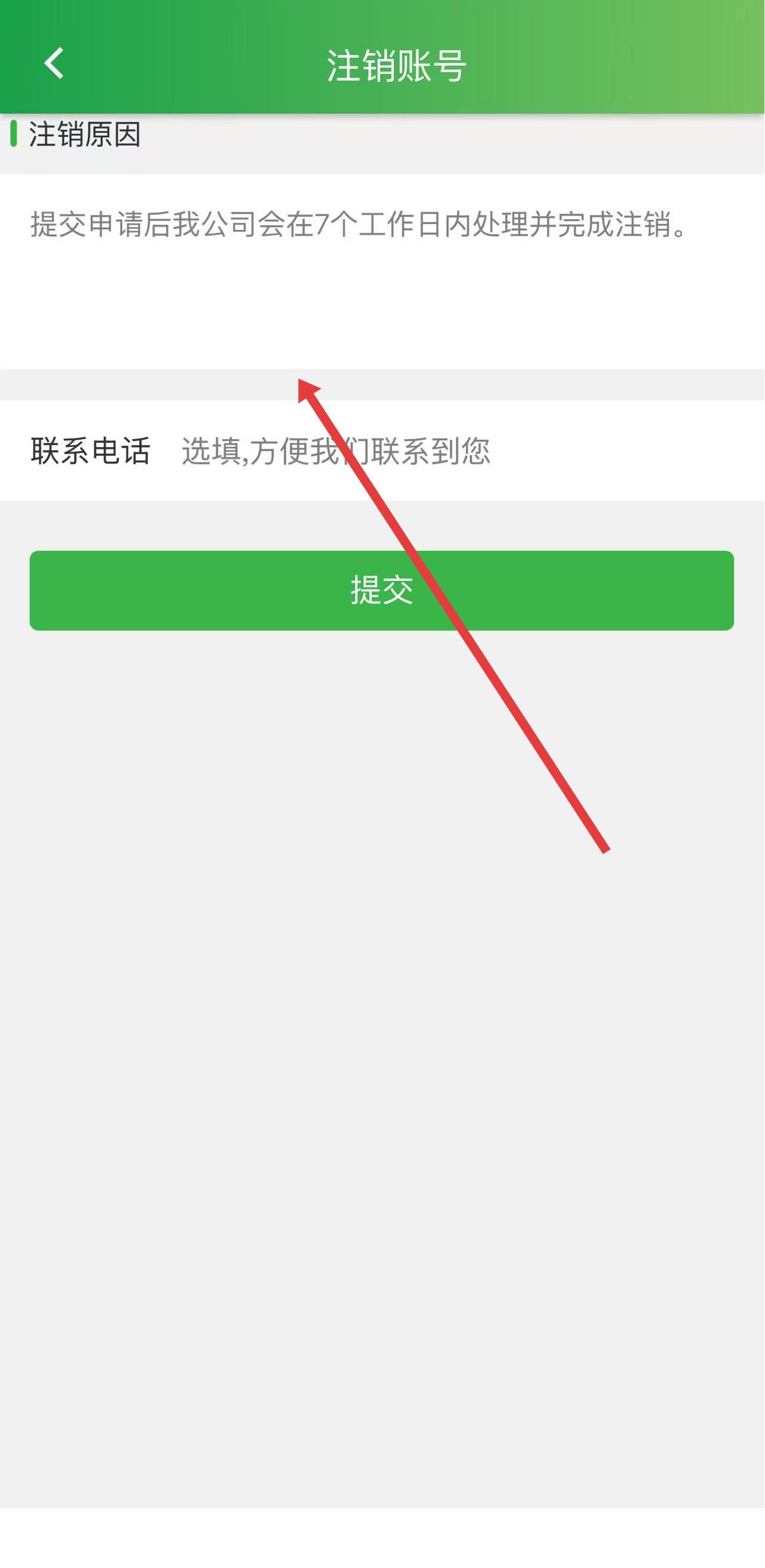 4、在注銷賬號頁面,填寫注銷原因,可選擇填寫聯(lián)系電話,然后點(diǎn)擊提交,等待7個(gè)工作日內(nèi)完成注銷。