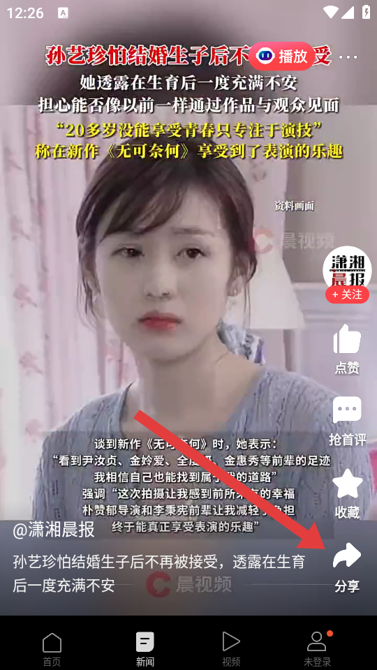 2、在視頻播放的界面,點(diǎn)擊右側(cè)分享按鈕,彈出功能的選項(xiàng)欄。