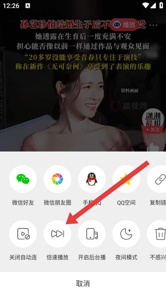3、在功能選項(xiàng)欄中,需要點(diǎn)擊倍速的播放,進(jìn)入倍速選擇的界面。