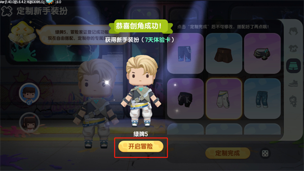 3、在正式的開始冒險之前,玩家將需要進行個人角色形象的設(shè)計,可以點擊右側(cè)方的各種服飾按鈕,設(shè)計好形象之后,點擊【定制完成】即可;