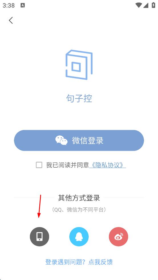 3、在登錄選擇頁面,點擊其他方式登錄中的手機圖標,進入到短信驗證登錄頁面。
