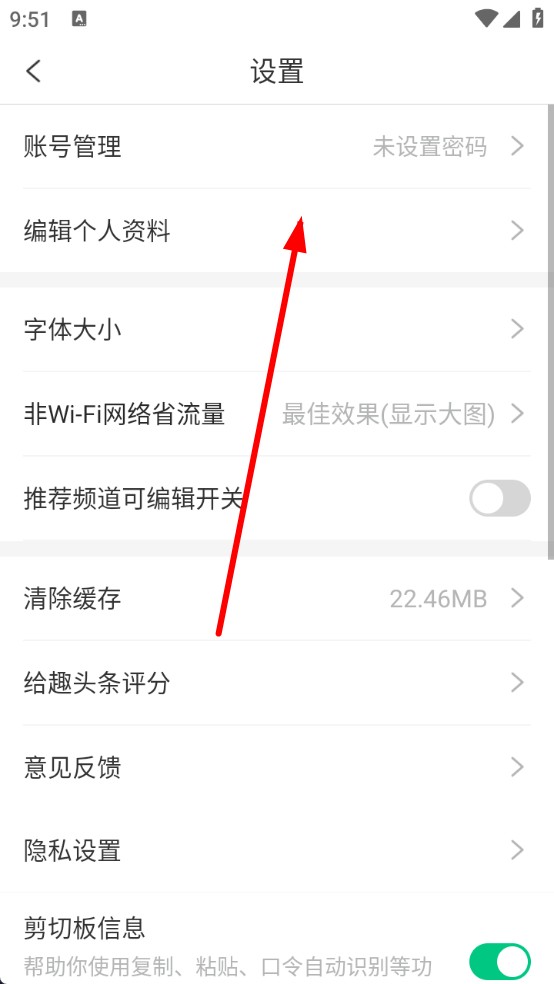 2、在設(shè)置頁面中,點(diǎn)擊編輯個(gè)人資料選項(xiàng)。
