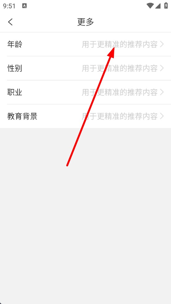 4、在更多頁面里,點(diǎn)擊年齡選項(xiàng),輸入自己的年齡,完成年齡設(shè)置。