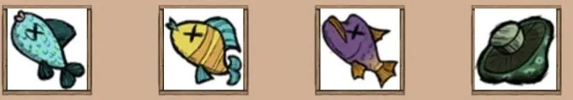 材料兩個魚一塊冰,一個樹枝,沒多大用處,當(dāng)零食吃的玩意。