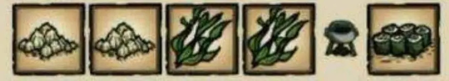 主材料是兩個海帶,然后剩下的有一個魚類,加一個樹枝就可以做出來,圖片就不找那么多了,魚多可以兩個魚加兩個海帶就行。