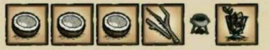 材料廉價的回血食物,3個水果加一個樹枝就可以做出來不一定用椰子,也可以用香蕉,石榴,西瓜,但是偏偏漿果就是不行,沒食物了可以吃這個湊合著過,海難食物大都是偏回血的。