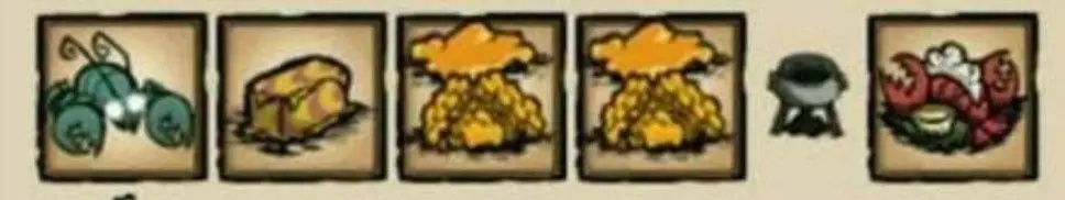 沒錯,饑荒回血回san的超級食品,一只活龍蝦(死龍蝦放不進(jìn)鍋里)加一塊黃油,加填充物,不一定像圖里一樣要蜂蜜,只要不是肉類和冰就可以搞出來了,黃油比較難搞,所以不推薦。