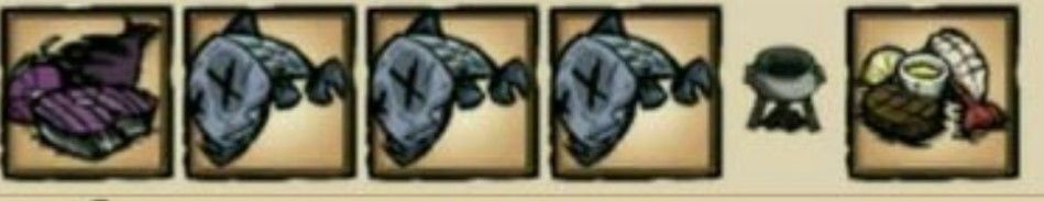 一個肉加3條魚或者兩塊肉加兩條魚就可以制作海難最容易做的回血回san值神級食物了,肉可以是怪物肉,但是只能用肉類,中間不能加素菜,蛋也不行。