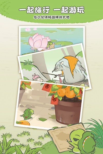 由阿里傾情打造的休閑益智類手游。旅行青蛙中國版跟原版的玩法差不多,只是旅行青蛙中國之旅你的蛙兒子帶回來的明信片變?yōu)橹袊L(fēng)景!
