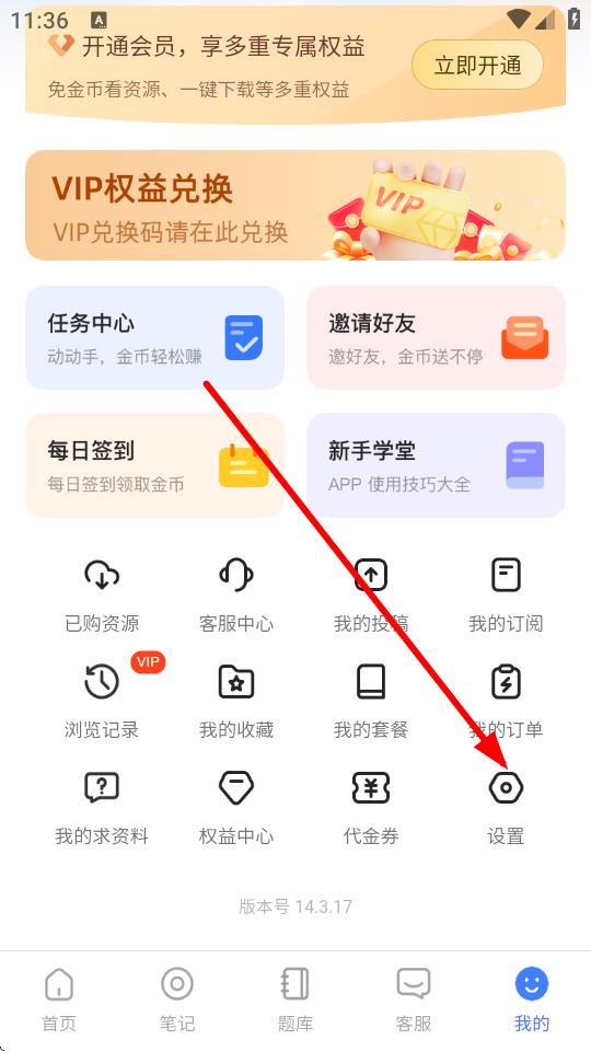 2、在我的頁面中找到,并點(diǎn)擊設(shè)置圖標(biāo)進(jìn)入設(shè)置界面。