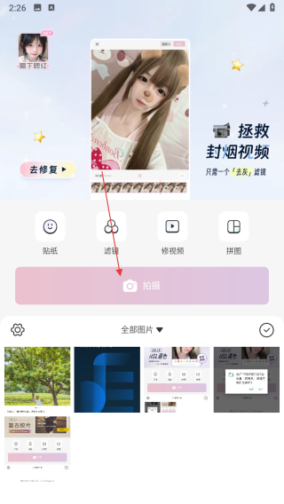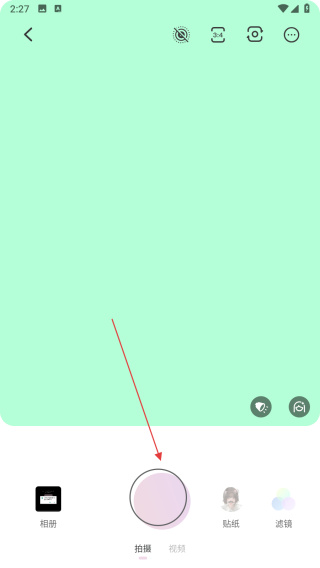 1、打開日雜相機APP,在主界面點擊粉色的拍按鈕,進入拍攝準備環(huán)節(jié)。