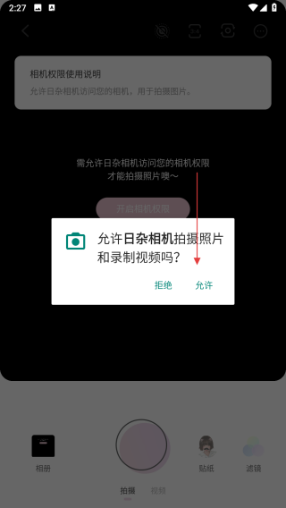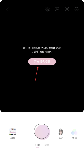 2、若彈出需允許日雜相機訪問您的相機權(quán)限才能拍攝照片~的提示框,點擊開啟相機權(quán)限按鈕。