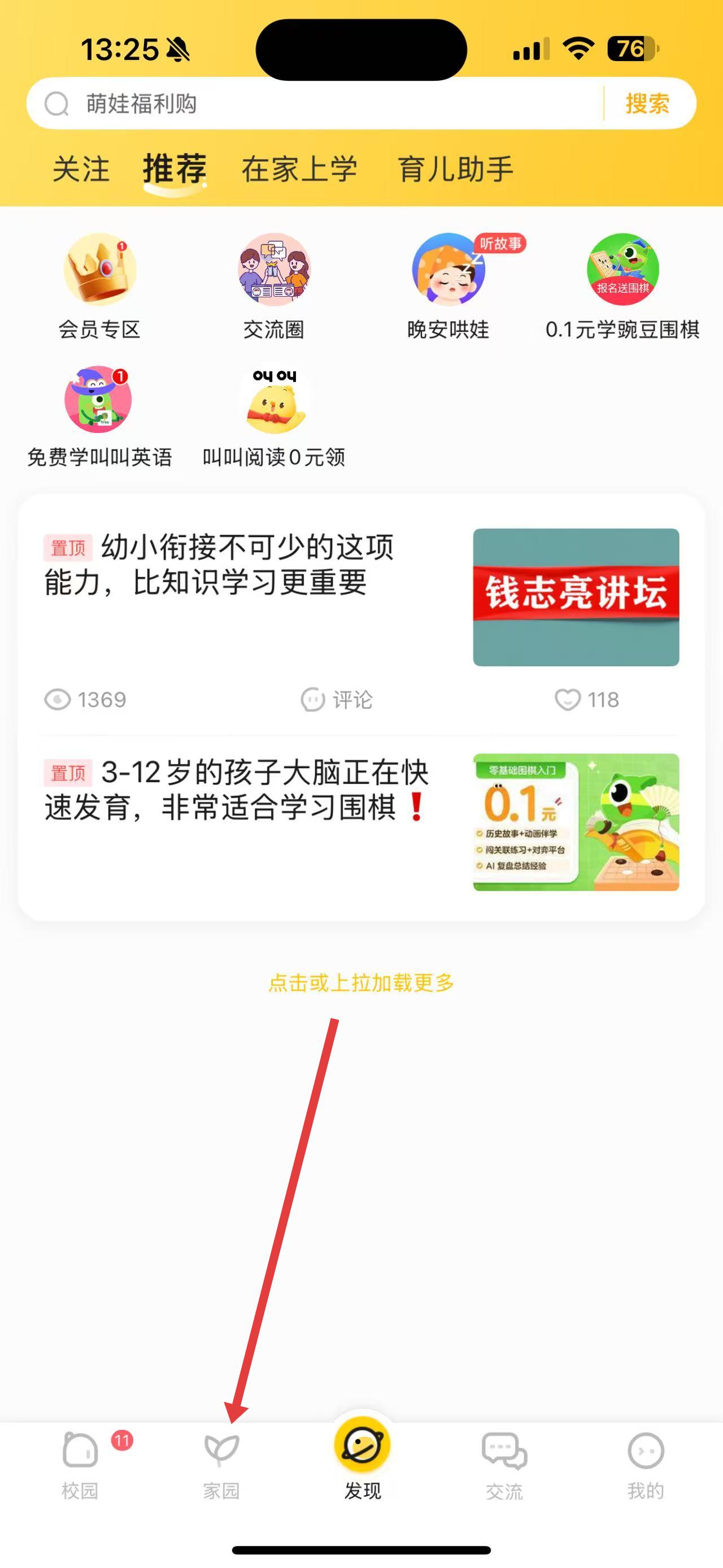 1、打開掌通家園App,在底部導(dǎo)航欄中點擊家園選項進(jìn)入相應(yīng)頁面。