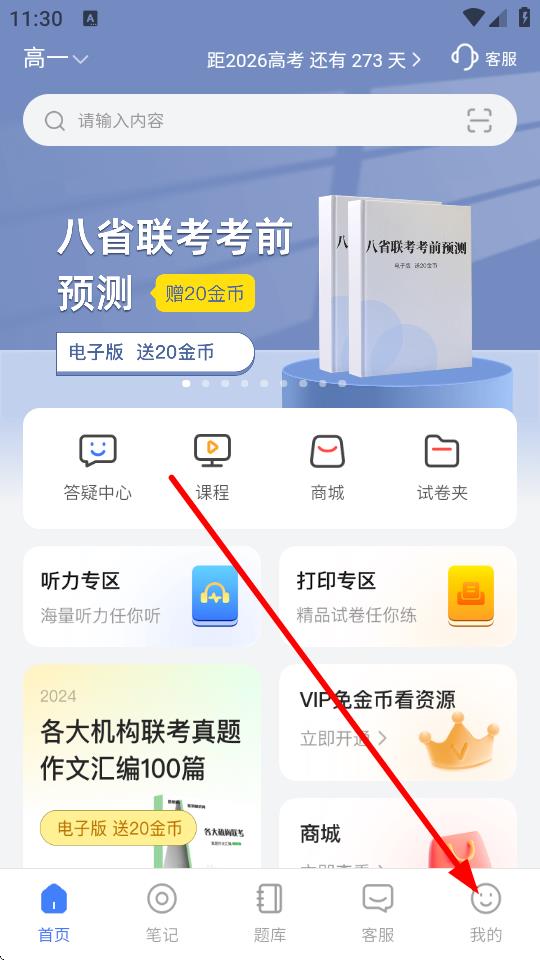 1、打開答案解析網(wǎng)app進(jìn)入首頁,點擊底部導(dǎo)航欄中我的選項。