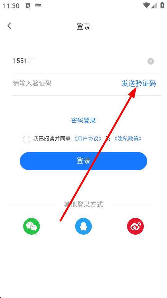 4、若選擇手機號注冊,輸入手機號后點擊發(fā)送驗證碼,收到驗證碼并填入,勾選同意相關(guān)協(xié)議后點擊登錄,即可完成注冊。