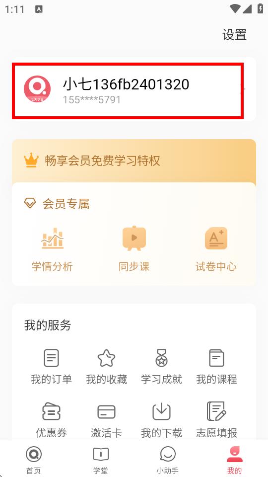 1、打開七天學(xué)堂App,點擊底部導(dǎo)航欄我的選項進入個人頁面。