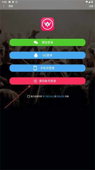 3、進(jìn)入登錄的頁面內(nèi),點(diǎn)擊清風(fēng)賬號(hào)登錄的功能按鈕。