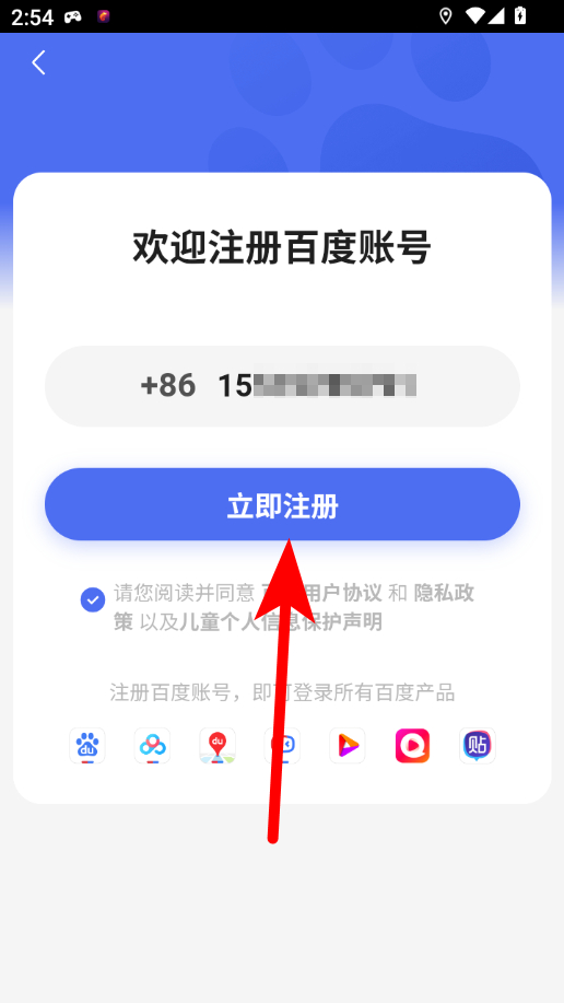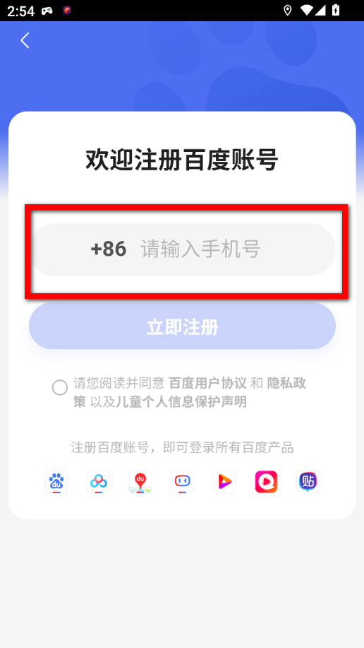 3、在歡迎注冊百度賬號界面,在輸入框中輸入手機號。