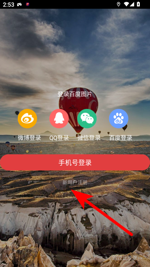 2、在登錄百度圖片界面,點擊新用戶注冊選項。