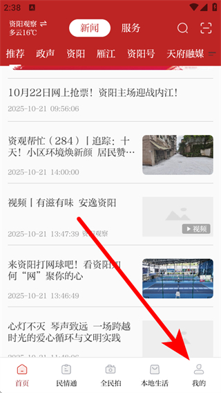 1、打開今日資陽app,點(diǎn)擊底部我的按鈕,進(jìn)入個人的頁面。