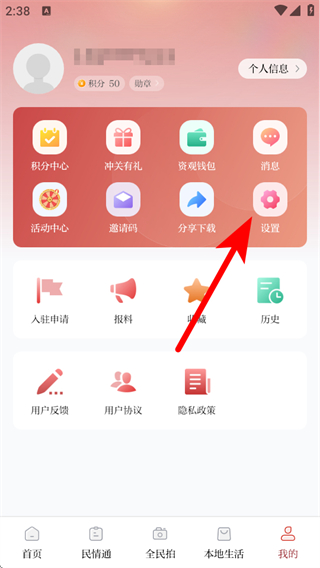 2、在個人的頁面,需要點(diǎn)擊設(shè)置的按鈕,進(jìn)入設(shè)置的頁面。
